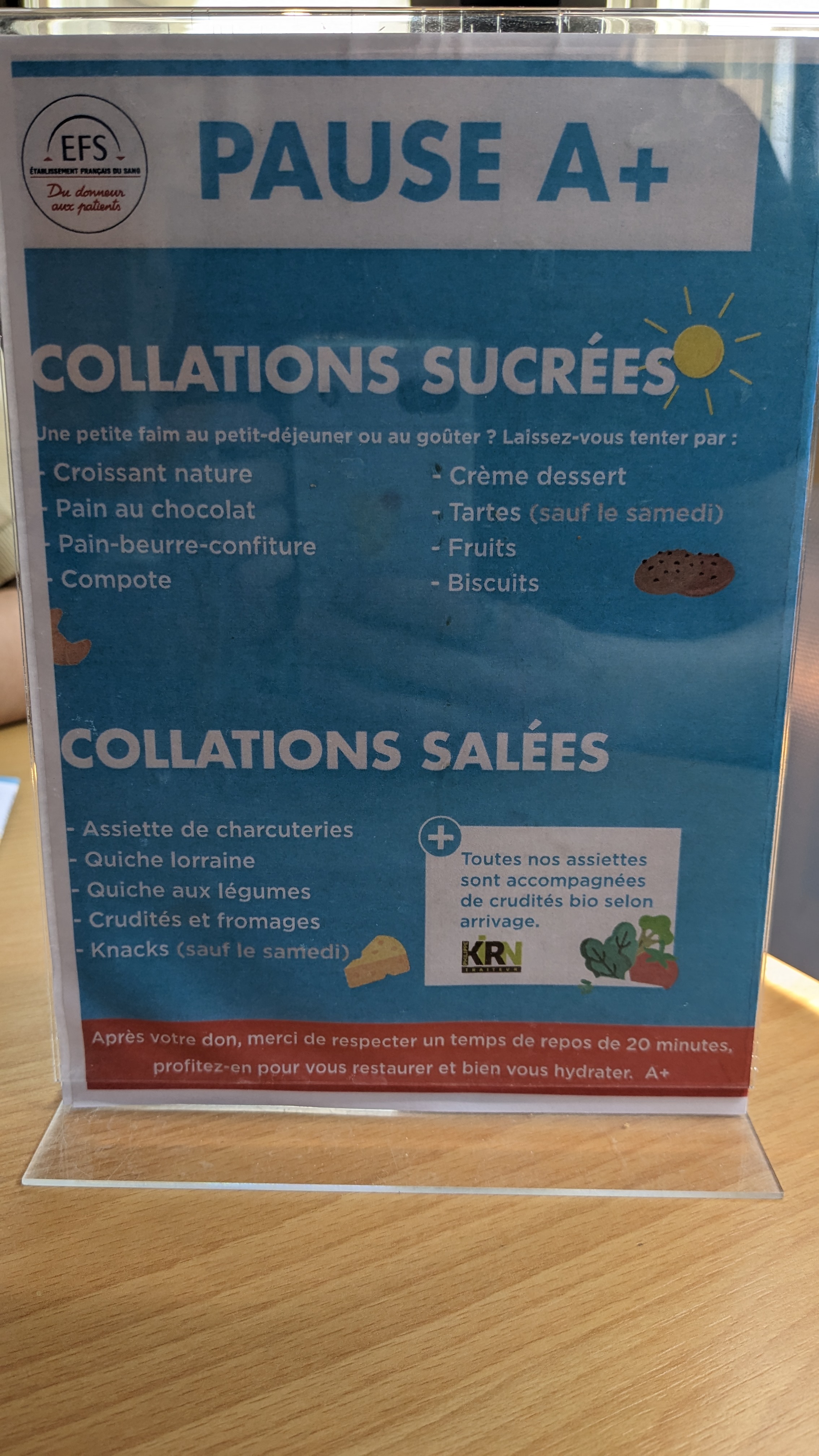 Je suis depuis plus de 10 ans un donneur très régulier! Mais là je constate avec tristesse que le moment de collation n´est plus à la hauteur de mes attentes. tous les contenants, même les tasses à espresso sont jetables..... pourtant vous disposez d´une nouvelle machine à laver la vaisselle. les crudités sont pas variées et les tartes pas de saison.... j´ai plusieurs fois rempli un questionnaire mais rien ne change. Vous avez tous les moyens à votre disposition pour servir un repas avec plus d´amour, je ne comprends pas pourquoi personne ne réagit!